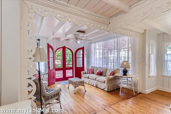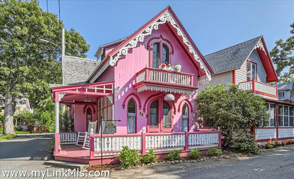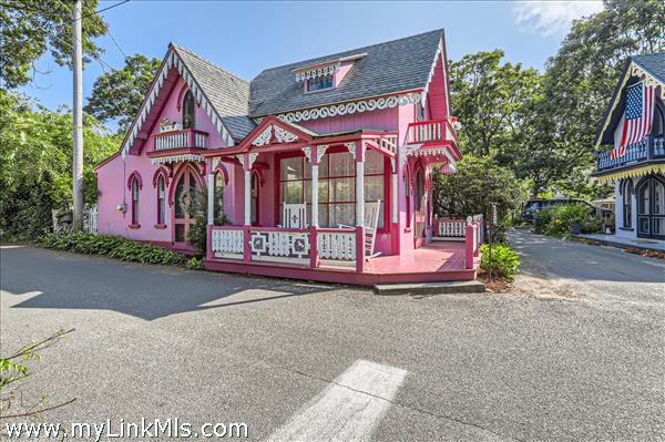 Iconic, Historic and Pink! YEAR-ROUND WINTERIZED COTTAGE! This is a chance of a lifetime to live in the most admired cottage on Martha's Vineyard. Built in 1870 this adorable 2 Bedroom 1 Bath home has been lovingly cared for and updated in 2021 with insulation and mini splits for year-round comfort. The home boasts signature gothic doors, a stained-glass window and a large picture window in the living room allows for extra light. The brick patio garden is the perfect spot for outdoor cookouts or to lounge in the shade with friends and family. The home is being sold furnished and turn-key.
