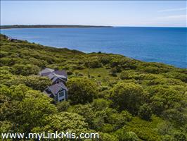 This waterfront 4 bedroom 2.5 bath quality custom home and detached 1 bedroom, 1 bath guest studio are sited on 5.6 pristine acres. Enjoy spectacular water views and magnificent sunsets from almost every room as well as from the stone terrace, screened porch and the primary bedroom balcony. This is a finely crafted home with many wonderful details including salvaged heart pine floors and beautiful old beams. A large building envelope allows room for expansion should a new owner desire. Relax amidst the gardens, expansive lawn and mature trees as you take in the beauty around you or go for a leisurely stroll to Menemsha Village. A short path leads to 340 feet of private waterfront on the Vineyard Sound where one can swim peacefully in the calm waters.