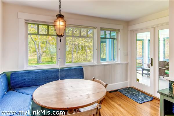 Kitchen with eat in breakfast area opens into dining area with wonderful views. Living room with beautiful stone fireplace and expansive views as well. Screened porch off kitchen and first floor bedroom. Full bath.