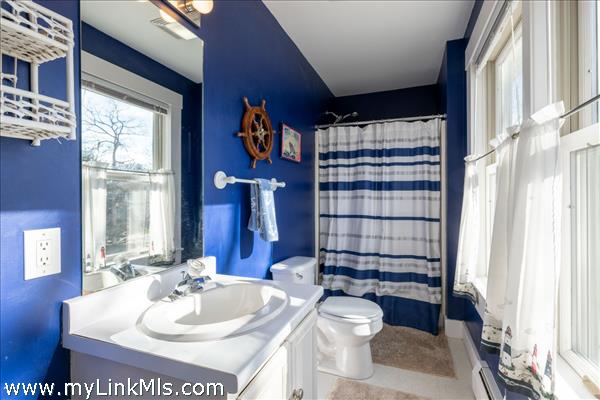 Primary bedroom suite with full bath, 2 guest bedrooms and shared hall bath.