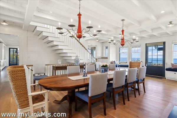 Welcome to your dream retreat in Oak Bluffs. A magnificent eight-bedroom oceanview estate that combines luxury, space, and unparalleled views in one breathtaking offering. This property is designed to accommodate family and friends with ease while offering an elegant and serene environment for all to enjoy. The open floor plan of the main living areas ensures a seamless flow between the living room, dining room, and kitchen, making it perfect for entertaining. High ceilings and large windows flood the space with natural light and provide spectacular water views from every angle. The state-of-the-art kitchen is a chef's delight, featuring high-end appliances, ample counter space, and a large island that doubles as a breakfast bar. Custom cabinetry and elegant finishes complete this culinary haven. Each of the eight bedrooms is designed as a private sanctuary, offering comfort and tranquility. Most rooms feature ensuite baths and large windows that offer stunning water views, allowing you to wake up to the sight and sound of the gentle waves. In addition to the main living room, the property includes several cozy sitting areas, a media room for movie nights, and a game room, ensuring there's always a perfect spot for relaxation and entertainment. It's more than just a home, it's a sanctuary where you can create lasting memories with loved ones, enjoy sophisticated coastal living, and savor the unique charm of this beautiful area.