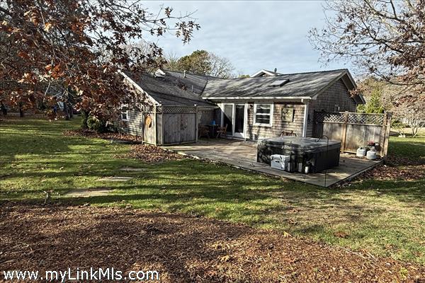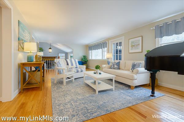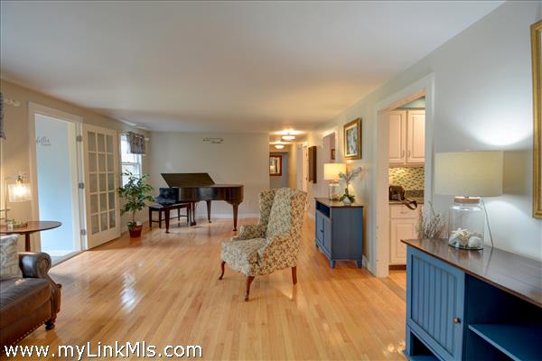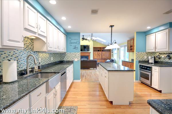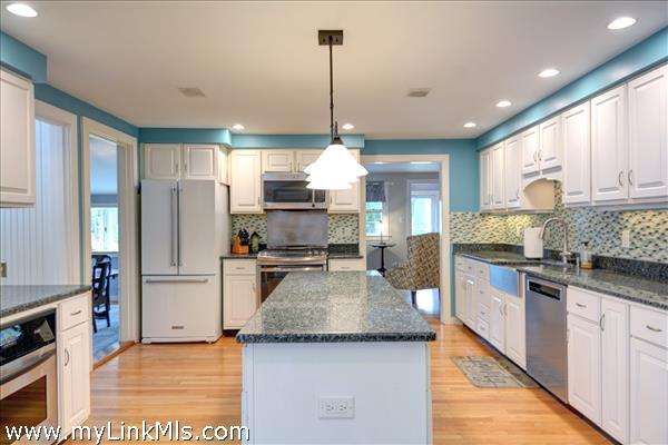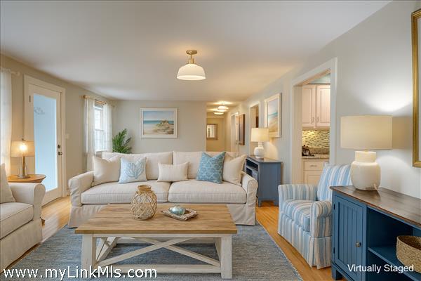 35 Mariner’s Way is sited on nearly a half acre lot and lies within walking distance to Edgartown Village shops, restaurants, galleries, and inns and Sheriff’s Meadow conservation land. This 4 bedroom, 2 ½ bath home features a large living room and formal dining room, chef’s kitchen with two ovens and wine room/pantry, and a spacious family room with a gas fireplace. There are two ensuite bedrooms found on each floor. A colorful children’s rec room is just downstairs which could also function as a media room. Step outside to wide front, back and side yards which provide plenty of room for a pool. Other features include hardwood flooring in most rooms, a two-car garage, patio with hot tub, and a large outdoor shower. This property is connected to both town water and sewer.